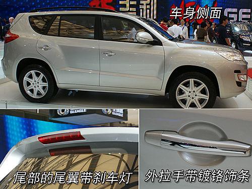 帝豪EX825車型,也是此次吉利主推的SUV車型之一。身形相比全球鷹SUV更大更寬,長(zhǎng)寬高分別為4839/1880/1715(mm),軸距為2800(mm),車重為1685(kg)。前大燈的不規(guī)則設(shè)計(jì)及前臉的結(jié)構(gòu)很容易讓人聯(lián)想起保時(shí)捷凱宴的風(fēng)格。