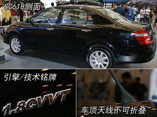 SC618的車頭很具歐陸風情,傾向于豪華感覺的前臉下部,駐車雷達已經(jīng)成為標準配置。而兩側(cè)的大燈罩內(nèi),更是效仿了寶馬車型將照明部分設計出天使眼的感覺。