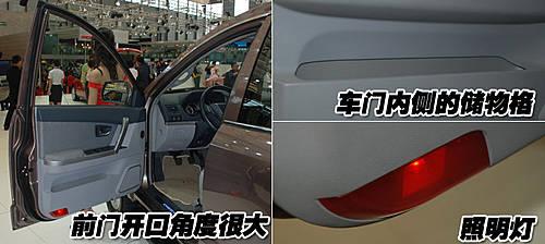 瑞麒X5的前排車門開口角度很大,可以方便駕駛員及乘員方便的進(jìn)出車輛。前排車門內(nèi)側(cè)設(shè)計(jì)了儲(chǔ)物格,可以存放一些小件隨身物品。而且前排車門內(nèi)側(cè)還帶有照明燈,人性化配備非常周到。