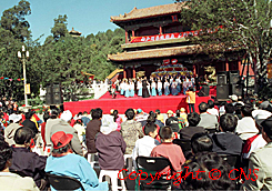 北京民眾二日在景山公園參加國慶游園活動時,觀看各文藝團體的精彩演出,歡渡國慶節(jié)假日。