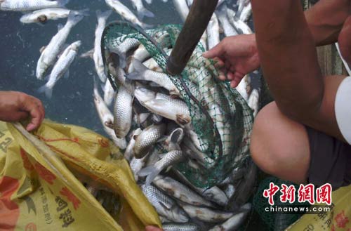 據(jù)此前官方媒體報道,截至12日上午,汀江流域和位于永定縣境內(nèi)的棉花灘庫區(qū)出現(xiàn)了大面積的死魚和魚中毒浮起現(xiàn)象,據(jù)初步統(tǒng)計,僅棉花灘庫區(qū)死魚和魚中毒就達378萬斤之多。