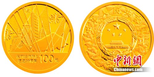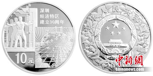 中國人民銀行今天向海內(nèi)外公開發(fā)行深圳經(jīng)濟(jì)特區(qū)建立30周年金銀紀(jì)念幣一套。該套紀(jì)念幣共2枚,其中1/4盎司金幣1枚,1盎司銀幣1枚,均為中華人民共和國法定貨幣。
