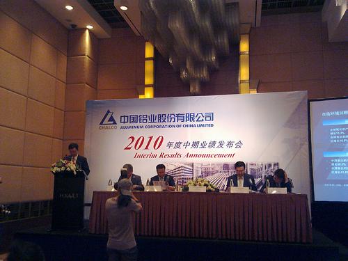 8月24日中國(guó)鋁業(yè)2010中報(bào)業(yè)績(jī)發(fā)布現(xiàn)場(chǎng)。新民網(wǎng)記者卜春艷 現(xiàn)場(chǎng)回傳