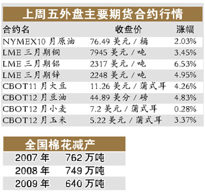 棉花價格的大幅上漲有多方面因素的推動,國內(nèi)棉花減產(chǎn)是漲價的基礎(chǔ)。同時國際市場上棉花價格的上漲也給國內(nèi)棉花價格帶來推動力,國際棉花價格自今年7月份開始累積漲幅已經(jīng)達到35%。