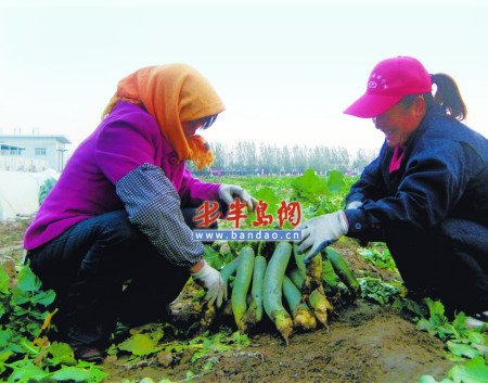 記者了解到,1999年,寒亭區(qū)“濰縣蘿卜”商標(biāo)注冊(cè)成功,同年,濰縣蘿卜被確認(rèn)為中國(guó)國(guó)際農(nóng)業(yè)博覽會(huì)的名牌產(chǎn)品,之后又通過(guò)國(guó)家綠色食品認(rèn)證。自此之后濰坊的蘿卜也成為大家口耳相傳的名蘿卜了!昂^(qū)下屬六個(gè)街道,種植濰縣蘿卜的主要有兩條街道,種植土地已經(jīng)達(dá)到了5.2萬(wàn)畝!焙^(qū)宣傳部金主任笑著說(shuō)。