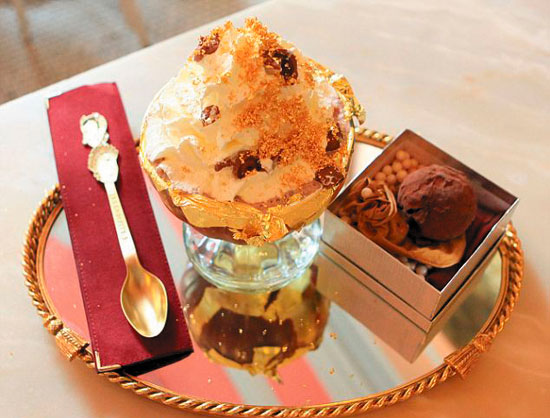這家店出售的奢侈甜品非同一般,它們的價格已打破最貴甜品的世界紀錄。包括價格約合17萬元人民幣的“頂級金箔巧克力布丁”和價格約合6800元人民幣的“英格蘭黃金圣代冰激凌”。這兩樣甜點已打破吉尼斯世界記錄,成為全球最昂貴的甜品。