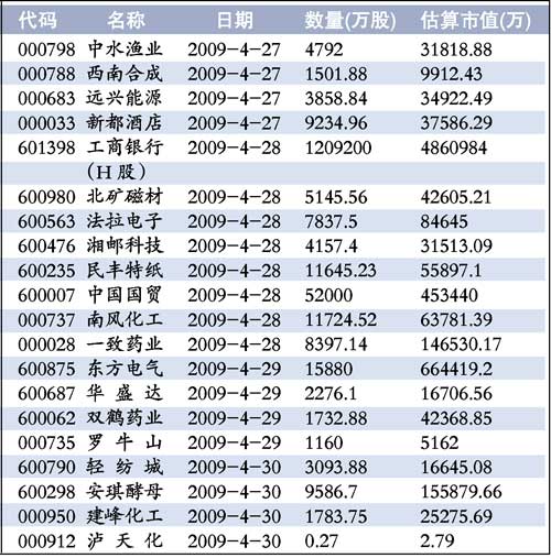 值得一提的是,本周解禁的204億股包括了A股和H股兩部分。H部分是28日將解禁的工商銀行(601398)120.92億限售股,這部分股份占了本周統(tǒng)計(jì)解禁總量的59%,解禁對A股影響不大。工行日前公告稱,本周,高盛共持有164.76億股工行H股,有一半將于4月28日解禁,其余將于10月20日解禁。而高盛3月25日宣布,自愿將所持有的80%(約131.8億股)工行限售股限售期延長1年,至2010年4月28日;余下的20%將于4月28日解禁。如高盛擬出售其將于2009年4月28日解禁的H股股權(quán),高盛將會(huì)研究能提高價(jià)值及降低市場影響的可行方案,并優(yōu)先考慮以私募配售方式出售給投資者。