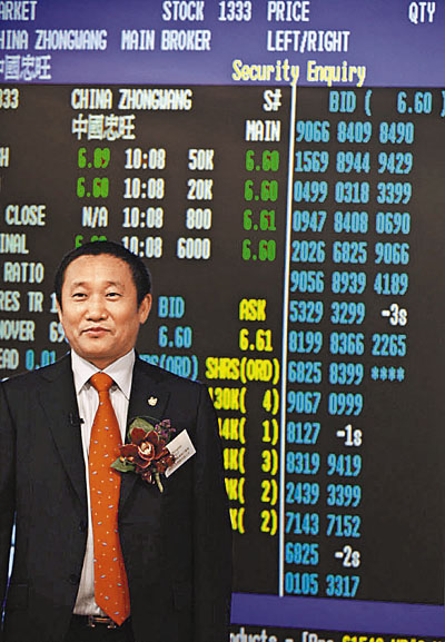 中新網(wǎng)5月9日電 中國忠旺8日在香港證券交易所掛牌上市,董事長劉忠田身家達(dá)233億元人民幣,較“2009新財(cái)富500富人榜”榜首江蘇富豪沈文榮的200億元人民幣為多,“晉升”為內(nèi)地首富。
