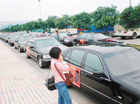 昨日下午2時(shí)30分許,在兩輛“三菱”越野車的帶領(lǐng)下,30輛清一色的黑色奔馳轎車列隊(duì)駛?cè)胛靼蚕剃枃H機(jī)場停車場,引起不少過往乘客駐足觀看。 “不知道哪位貴賓要來西安?”不少人都小聲議論著。30輛黑色奔馳轎車中,西安本地牌照的不少,還有北京、天津牌照的車輛,全部為S500、S6OO系列。