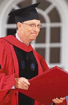 哈佛大學學生報《哈佛深紅報》將蓋茨稱為“哈佛最成功的輟學生”,他在1973年秋季入讀哈佛,兩年后輟學,和兒時玩伴艾倫一同創(chuàng)辦了微軟公司。在離開哈佛30多年后的2007年,蓋茨終獲得母校授予榮譽博士學位。