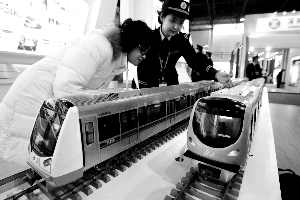 北京自主生產(chǎn)的地鐵房山線列車模型昨日首次亮相老國(guó)展,列車整車國(guó)產(chǎn)化率達(dá)到95%以上,時(shí)速可達(dá)100公里。