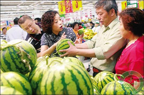 雖然今年的瓜小,但是也有一部分市民卻為此“偷著樂”,上海商報(bào)記者小王打趣地告訴本網(wǎng),“今年的西瓜比往年,是真的小,大概一個(gè)正好夠一個(gè)人吃的,公平又健康,歡迎你來看世博會時(shí)好好品嘗!(余曉芬)