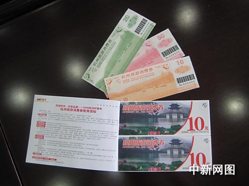 今年三月一日開始,杭州市面向國內(nèi)城市和港澳臺地區(qū)發(fā)放兩百四十萬份面額值一億五千萬元的“杭州旅游消費券”,至四月二十日,已經(jīng)發(fā)放到游客手中達兩百二十萬份。據(jù)抽樣調(diào)查顯示,百分之八十二點六二的受調(diào)查人員表示旅游消費券促使持券人有來杭旅游念頭,而每張十元的消費券拉動了兩百八十九點四五元的在杭消費。