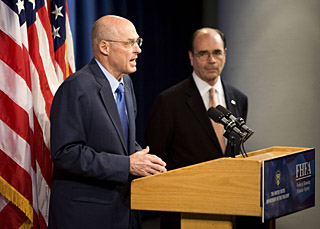 美國(guó)財(cái)政部長(zhǎng)亨利·保爾森7日在新聞發(fā)布會(huì)上宣布,國(guó)會(huì)今年7月份為監(jiān)管住房抵押貸款機(jī)構(gòu)而批準(zhǔn)成立的聯(lián)邦住房金融署將接手“兩房”日常運(yùn)作。