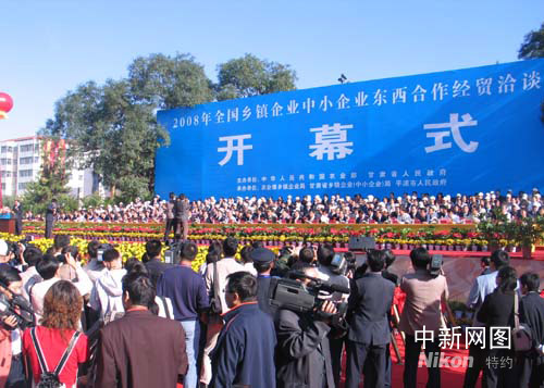 中新網(wǎng)平?jīng)?月12日電 (記者 羅德惠 殷春永)2008年全國鄉(xiāng)鎮(zhèn)企業(yè)中小企業(yè)東西合作經(jīng)貿(mào)洽談會今天在甘肅平?jīng)鲩_幕,海內(nèi)外300多家鄉(xiāng)鎮(zhèn)企業(yè)中小企業(yè)在這里“相親”,展開經(jīng)貿(mào)洽談與合作活動。