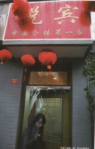 飯店的門臉不大,上面掛著一塊小牌子,寫著“中國個體第一家”。