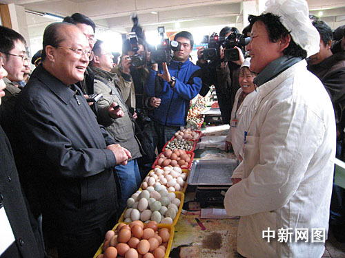 中新網(wǎng)鹽城十二月二十六日電 (記者 陳光明)今天,位于江蘇省鹽城市中心的人民路農(nóng)貿(mào)市場(chǎng)比往常更為熱鬧:許多市民等候在市場(chǎng)門口,迎接國務(wù)院產(chǎn)品質(zhì)量和食品安全專項(xiàng)整治活動(dòng)檢查組的到來。在人群簇?fù)碇校瑖屹|(zhì)檢總局局長李長江面對(duì)媒體采訪時(shí)說:產(chǎn)品質(zhì)量和食品安全集中整治行動(dòng)是民心工程、德政工程。