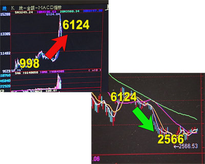 2年時間里,中國股市成了人民幣的“復印機”,無論買什么股票,投入一萬元,很快就會變成2萬元、3萬元,甚至更高,為了得到“復印”人民幣的資格,證券交易所里,急著開戶的人擠成一堆。