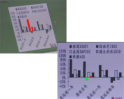 記者注意到,奧運召開的當年,韓國和美國的股市都有大幅上漲的表現(xiàn),但與此相反的是,西班牙和澳大利亞的股市卻是下跌或持平,那么,同為奧運舉辦的國家,股市的表現(xiàn)為什么卻截然相反?