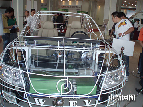 電動汽車“骨架”引人駐足。梁穎睿 攝