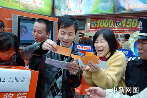 在廣東春節(jié)國內(nèi)游首場(chǎng)熱賣會(huì)上,抽獎(jiǎng)時(shí)中獎(jiǎng)的游客興高采烈。胡銀漢攝