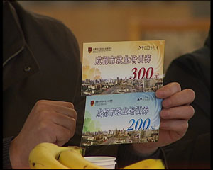 周紅林告訴記者,她的丈夫是個郵遞員,在送報紙的時候看到了園區(qū)門口的招工信息,經(jīng)過考試,她很快獲得了這份工作,而在服裝工業(yè)園區(qū)里,記者還見到了很多像周紅林一樣幸運的返鄉(xiāng)農(nóng)民工,其實他們能如愿以償?shù)刂匦戮蜆I(yè),得賴于覆蓋整個成都市的“就業(yè)信息庫”,在金堂縣勞動保障大廳,記者看見,大屏幕上的招工信息不停的滾動著:建材公司月薪最高2800元,服裝廠計劃招工300人,工作崗位遍及成都轄區(qū)的9區(qū)4市6縣。
