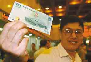 據(jù)悉,面額10元的紀(jì)念鈔在期貨市場已經(jīng)炒到接近400元一張,有人成功兌換后,轉(zhuǎn)身就以300元一張出手。