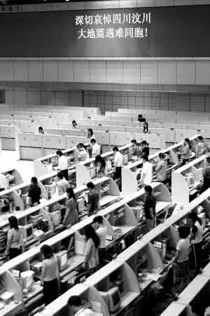 昨天一早,一位“夢不見了”的投資者最先在網(wǎng)上發(fā)帖。這篇題為“全國哀悼日(19日至21日)我們鎖倉為汶川地震遇難同胞致哀”的帖子這樣寫道:“5月19日至21日是全國哀悼日,讓我們股民也用自己的行動來表達(dá)對汶川地震中遇難同胞的深切哀悼,讓我們共同鎖倉三天!為災(zāi)區(qū)同胞獻(xiàn)上自己的愛心,為災(zāi)區(qū)同胞祈福!”黑色加粗的字體、簡單樸素的語言,卻道出了大批投資者的心聲。在19日至21日的全國哀悼日中,投資者的眼中已沒有股市。