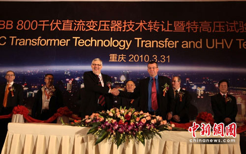 中新網重慶3月31日電(記者 郭虹)31日,位居全球500強之列的電力和自動化技術領域的廠商ABB集團在渝簽署協(xié)議,將800千伏高壓直流變壓器技術轉讓給其在華企業(yè)——重慶ABB變壓器有限公司;同時,ABB特高壓試驗中心亦在此落成。