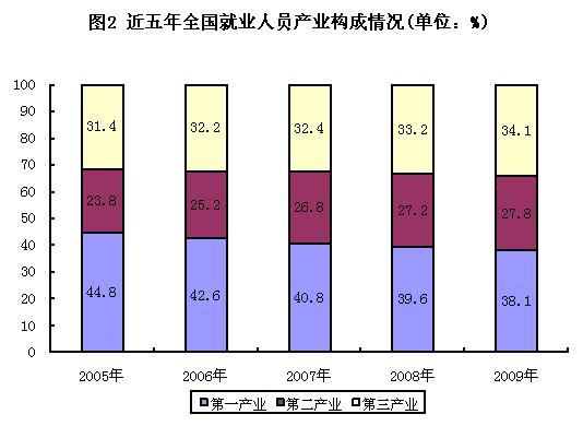 年末全國就業(yè)人員77995萬人,比上年末增加515萬人。其中,第一產(chǎn)業(yè)就業(yè)人員29708萬人,占全國就業(yè)人員的38.1%;第二產(chǎn)業(yè)21684萬人,占27.8%;第三產(chǎn)業(yè)26603萬人,占34.1%。年末城鎮(zhèn)就業(yè)人員31120萬人,比上年末凈增加910萬人。