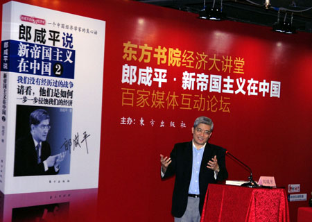 郎咸平于美國沃頓商學(xué)院獲得博士學(xué)位后,曾執(zhí)教沃頓商學(xué)院、密歇根州立大學(xué)、俄亥俄州立大學(xué)、紐約大學(xué)和芝加哥大學(xué),現(xiàn)任香港中文大學(xué)教授。他的主要著作有《誰在拯救中國經(jīng)濟》、《金融超限戰(zhàn)》、《誰都逃不掉的金融危機》等,互動在線創(chuàng)始人、董事長兼CEO潘海東主持了本次見面會。