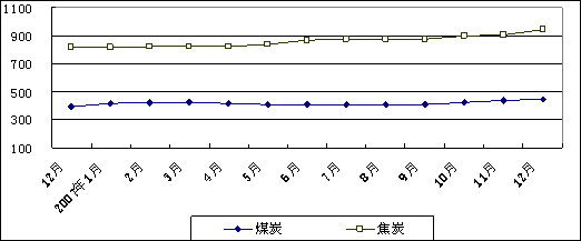 圖2-1:主產(chǎn)省煤炭和焦炭價(jià)格(單位:元/噸)
