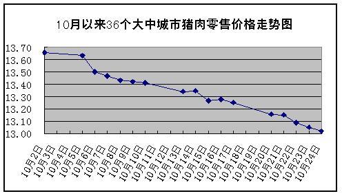 中新網(wǎng)10月27日電 據(jù)國(guó)家發(fā)改委網(wǎng)站消息,上周(10月20日~10月24日)全國(guó)36個(gè)大中城市集市、超市豬肉(精瘦肉)平均零售價(jià)格每500克為13.09元,與前一周(10月13日~10月17日,下同)相比下降1.58%。