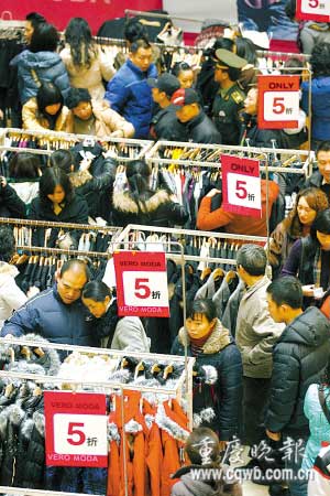 解放碑三日狂購活動昨日落幕。相關百貨商場稱,元旦期間銷售出現(xiàn)不同程度井噴,其中一福建男子兩天時間花了22萬元買化妝品。