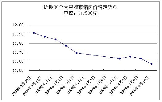 中新網(wǎng)4月13日電 據(jù)國家發(fā)展改革委價格監(jiān)測中心監(jiān)測,上周(2009.4.7-2009.4.10,下同)36個大中城市集市、超市豬肉(精瘦肉)平均零售價格每500克為11.62元,與前一周(2009.3.30-2009.4.3,下同)相比下降1.69%。