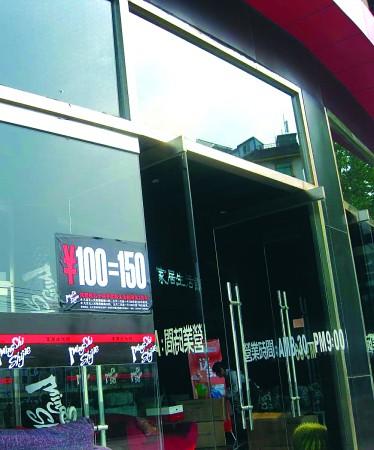 該生活館收銀臺一名工作人員告訴記者,這是他們?yōu)橛印拔逡弧备愕幕顒樱蠗l件的人民幣在消費(fèi)時不限量,不管多少都能當(dāng)150元使用。當(dāng)記者問這種促銷方式是否合適時,該店負(fù)責(zé)人表示,他們這樣做就是想讓利給顧客,從來沒有考慮過有什么不合適,而且,他們已經(jīng)到處做廣告,發(fā)宣傳單頁,即使改也來不及了。