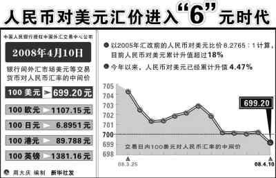 4月10日,人民幣對美元的中間價突破7元大關(guān),以6.9920改寫了匯改以來的新高紀(jì)錄,人民幣匯率毫無懸念地進入“6時代”。