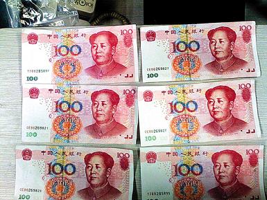 晚上姚先生夫婦回到家收賬,“我用驗鈔機查收,發(fā)現(xiàn)6張百元鈔票都是假的。老人家對錢接觸得不是很多,根本沒意識到那是假鈔。”當即姚先生就判斷是下午那伙人給的假錢,因為整整一天,只有那幾筆生意,“他們肯定是一伙的,看老人一個人看店,便想得便宜!币ο壬Q,這些假鈔一般人根本看不出來,外表和真鈔一模一樣,他用驗鈔機才驗出是假鈔。姚先生向記者展示收到的6張假鈔,其中竟然有兩張編號是一模一樣的,均為CE86269827,其它四張編號分別為CE86269828、CE86269821、TJ88285895、TJ88285897。