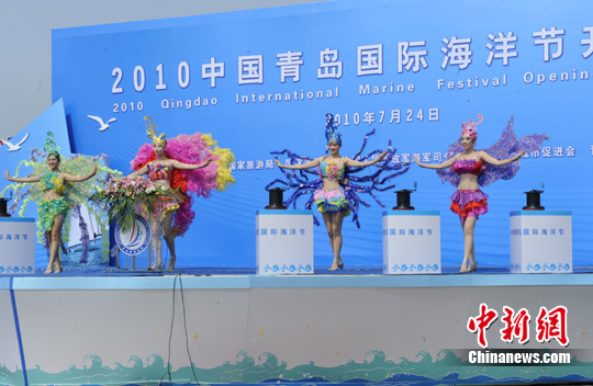 中新網(wǎng)7月24日電(記者田博川) 今日上午,由中國國家體育總局、國家旅游局、國家海洋局、海軍司令部以及北京奧運(yùn)城市發(fā)展促進(jìn)會和青島市政府聯(lián)合主辦的“2010中國青島國際海洋節(jié)”在奧帆中心隆重開幕。