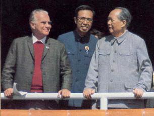 資料圖片:1970年10月1日,毛澤東和斯諾及夫人在天安門城樓上。同年12月,在和斯諾的談話中,表示歡迎美國總統(tǒng)尼克松訪問中國,改善中美兩國關(guān)系