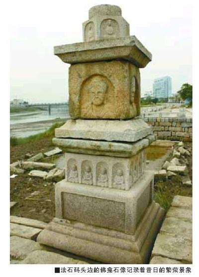 泉州曾是海上絲綢之路的起點,位于泉州灣晉江出?谔幍南y埔自然擔當了極其重要的角色。蟳埔村外晉江邊上的法石碼頭曾是重要的港口,來自阿拉伯和東南亞的商船均?坑诖。如今這里一片荒涼,只有孤零零佇立在江邊的那一座佛龕石像仿佛向人們訴說著碼頭昔日的輝煌——佛龕上既刻著佛像又刻著西域神像,各種文化曾在這里交融并和諧地共存著。