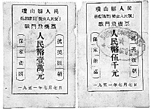 海口莫先生家里保存著兩張瓊山縣發(fā)動百姓向志愿軍捐款,購買“瓊山人民號”飛機的證明捐款票證。 沈善東 攝