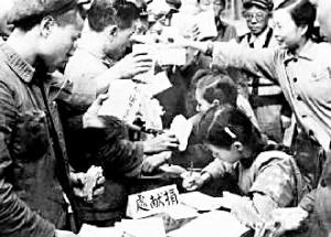 全國各地工商界踴躍捐獻(xiàn)款項(xiàng),支援志愿軍。