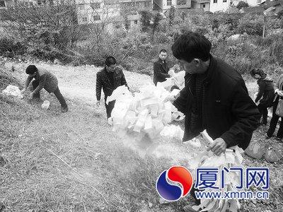 農(nóng)歷三月初三那天,他們掃墓的方式和清明掃墓是一樣的:先是由后人“掛紙”(在墳墓上掛紙帛,后改為壓紙帛)作為上墳的標志。掛紙之前,先鏟除墓上叢生的雜草,再將紙帛兩三張一疊折成波紋狀,再用小石塊壓在墳上。如果說墳墓是祖先死后居住的場所,那么壓紙就象征著子孫們一年一度為祖先的居所增添新瓦。掛完紙,再準備簡單的供品祭墓,然后燒紙錢,兒孫們在祖先墓前跪拜行禮,這樣既盡了子孫孝道,也祈求祖先護佑子孫平安如意。