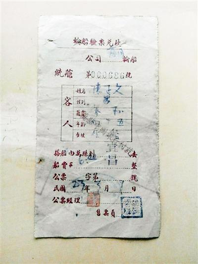 1934年的客運(yùn)輪船票