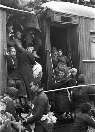 民國(guó)鄉(xiāng)民擠火車