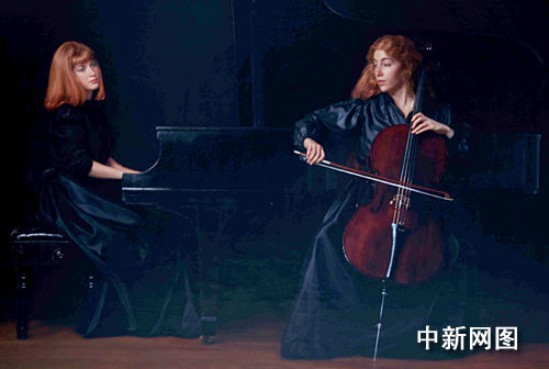 據(jù)介紹,《二重奏》是陳逸飛音樂(lè)題材肖像畫中尺寸最大的一幅(238厘米X 162厘米),與另一幅1986年作品《四重奏》結(jié)為姐妹篇,陳逸飛用其特有的手法,以深色背景襯托二位音樂(lè)家演奏時(shí)的動(dòng)態(tài)和神情,靜中有動(dòng),相得益彰,古典音樂(lè)中那既深沉,又浪漫的唯美色彩彌漫其中。作品構(gòu)思大氣高雅,筆觸柔和不失精準(zhǔn),幾乎達(dá)到完美境界,令觀者為之傾倒。