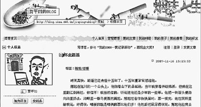11月16日,一篇署名為“賈平凹”的文章《懷念路遙》出現(xiàn)在某網(wǎng)站紀念作家路遙逝世15周年專題中。同時,該網(wǎng)站還掛出了“賈平凹獨家開博”的大圖。截至11月21日晚8時,“賈平凹”博客的點擊量已達124萬次。據(jù)介紹,這種日點擊率僅次于“瓊瑤”博客,超過“金庸”博客,在文化名人博客中名列前茅。