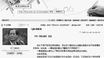 賈平凹跟陳忠實的遭遇相同!熬W(wǎng)站編輯事前給我打過電話,說要把我的那篇文章放到網(wǎng)上去,但沒說是開博客,現(xiàn)在我已叫他們把博客關了!辟Z平凹告訴記者。