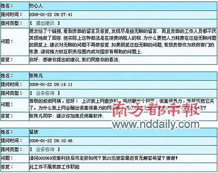 現(xiàn)在,在科技部“公眾問答”欄目能夠看到的最新留言大都是網(wǎng)友稱贊他們不管多無聊問題都認真回答的,而他們被稱贊的原因———那些無聊問題則一個都不見了。本報記者 張東鋒